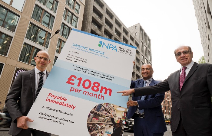 In an attempt to exert pressure on the government, Rees, alongside NPA board members Olivier Picard and Salim Jetha, today took a large invoice to the Department of Health and Social Care for £108 million – the amount the NPA claims pharmacies in England subsidised the dispensing of NHS medicines “from their own pockets” last month.